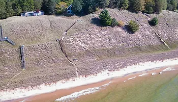 Beachfront Lake Michigan Cottage Fire Pit And Deck